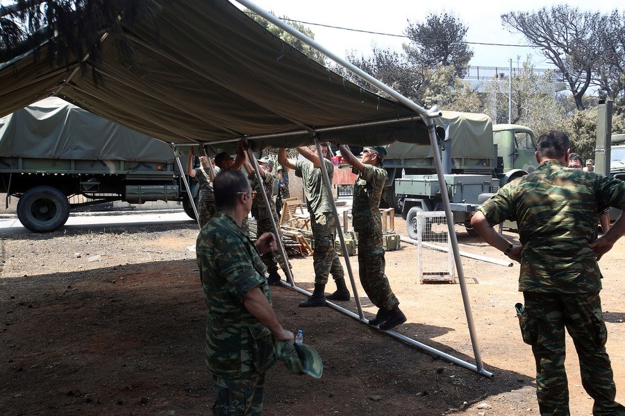 Στο πλευρό των πυρόπληκτων βρίσκονται από το πρωί άνδρες των Ενόπλων Δυνάμεων.Οι μονάδες του Στρατού, που βρίσκονται στον Άγιο Ανδρέα, έχουν ξεκινήσει, ήδη, τις εργασίες για να στηθούν οι απαραίτητες σκηνές για τους πληγέντες που έχουν μείνει άστεγοι, ενώ από το μεσημέρι μοίρασαν μερίδες φαγητού και νερού στους κατοίκους, αλλά και στους εθελοντές που παραμένουν στην ευρύτερη περιοχή.Δείτε τις φωτογραφίες από το ΑΠΕ-ΜΠΕ: