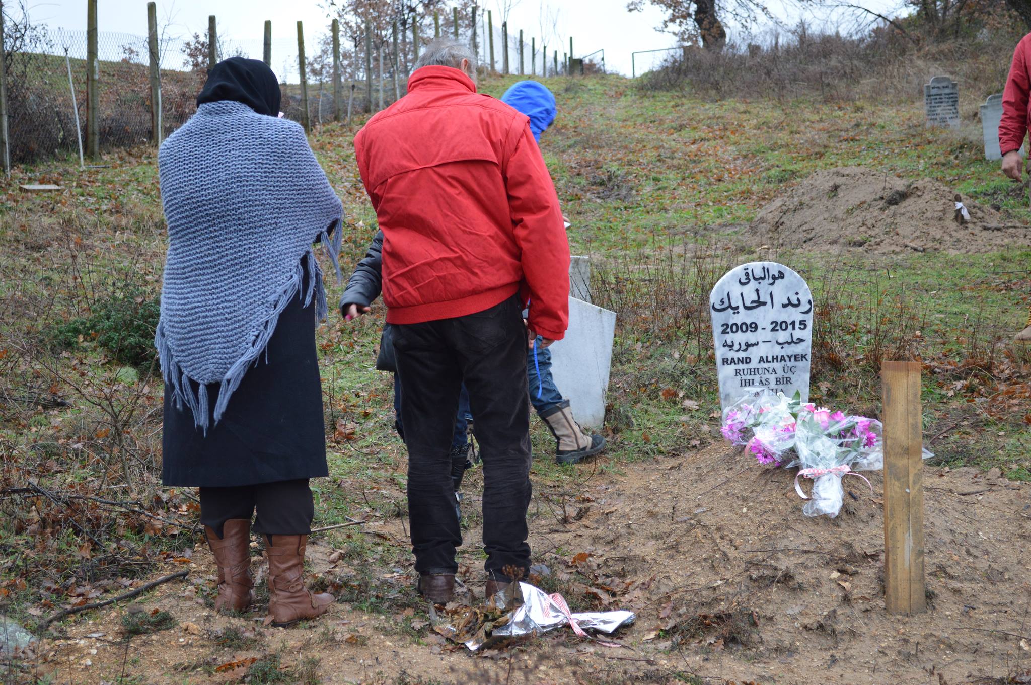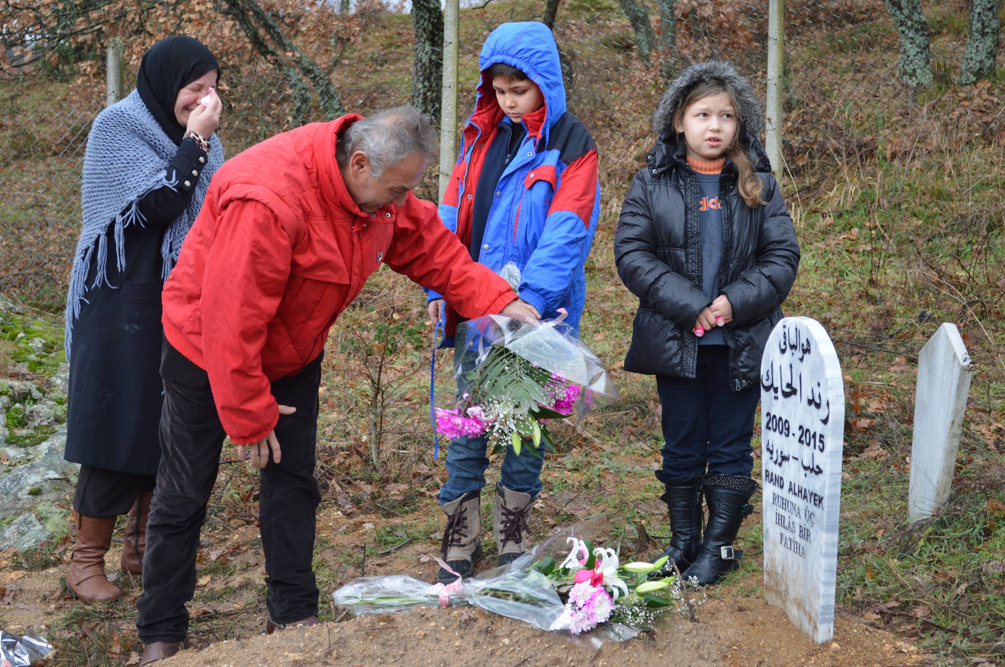 Μία οικογένεια Σύρων προσφύγων, που έχασε το εξάχρονο κορίτσι τους σε ατύχημα με τρένο στα σύνορα με την Ελλάδα, θρηνεί πάνω από τον τάφο του αδικοχαμένου παιδιού, στην Κορνοφωλιά Έβρου.