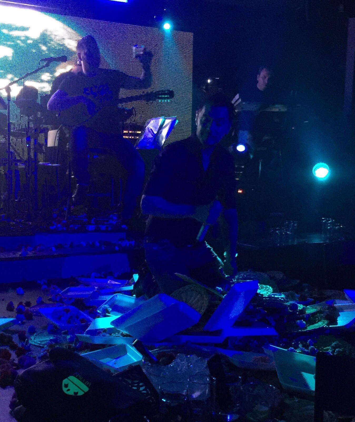 Ο Γιώργος Γιασεμής όμως δεν σταμάτησε το πρόγραμμα του και όταν επέστρεψε στο καμαρίνι του δέχτηκε τις πρώτες βοήθειες από έναν φίλο του γιατρό.