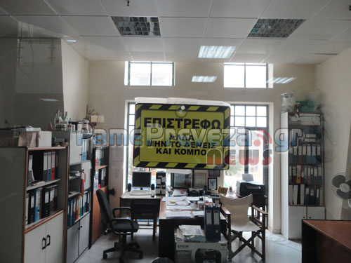 Δύο πινακίδες που δεν ταιριάζουν σε δημόσια υπηρεσία, έχουν αναρτηθεί στις πόρτες γραφείων του δήμου Πρέβεζας.