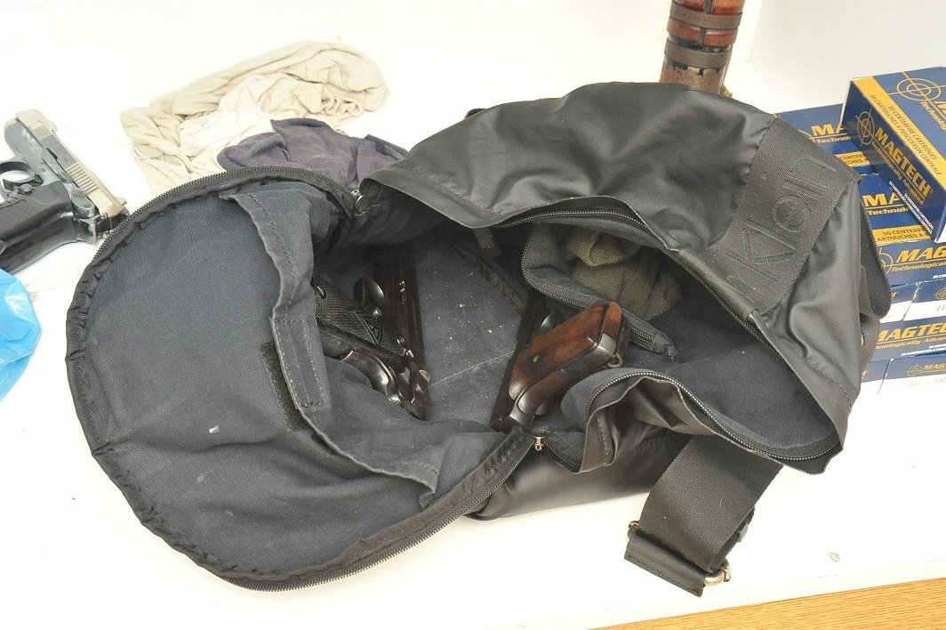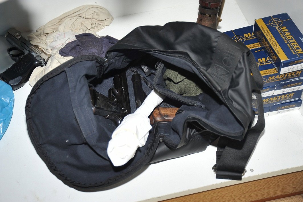 Τρία πιστόλια εύχρηστα με φυσίγγια και γεμιστήρες πλήρεις φυσιγγίων και μεγάλος αριθμός φυσιγγίων των 9mm.