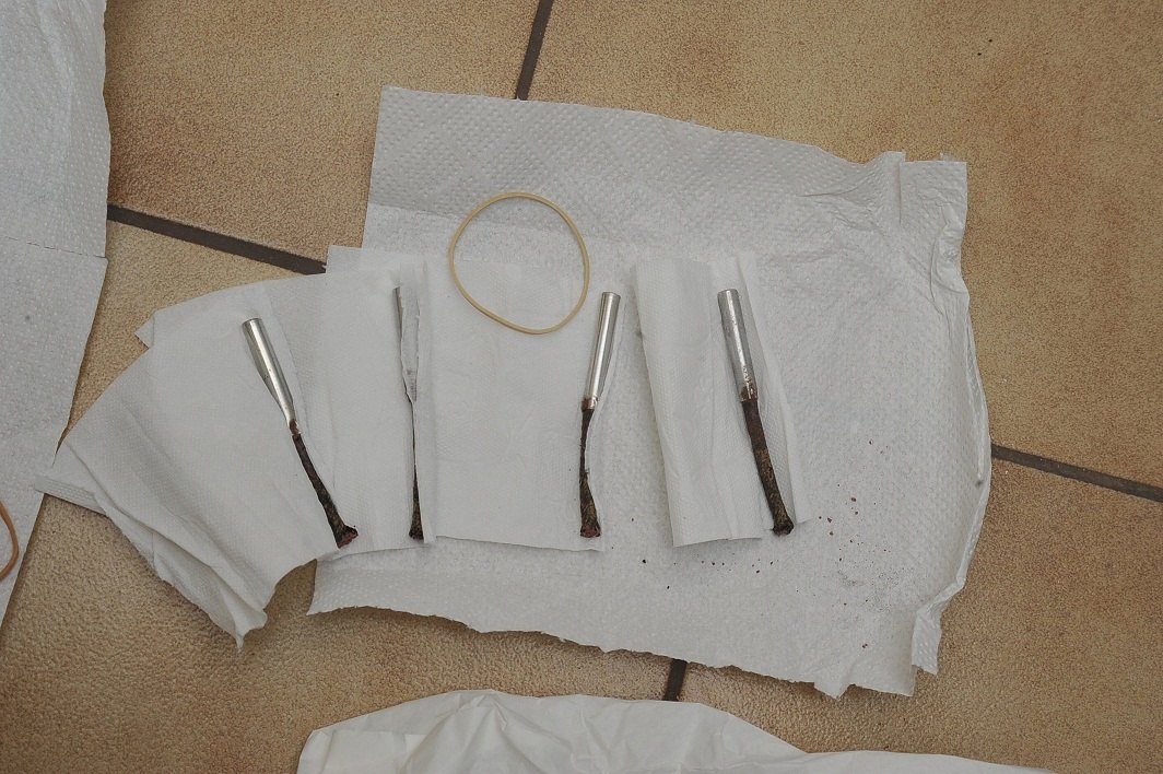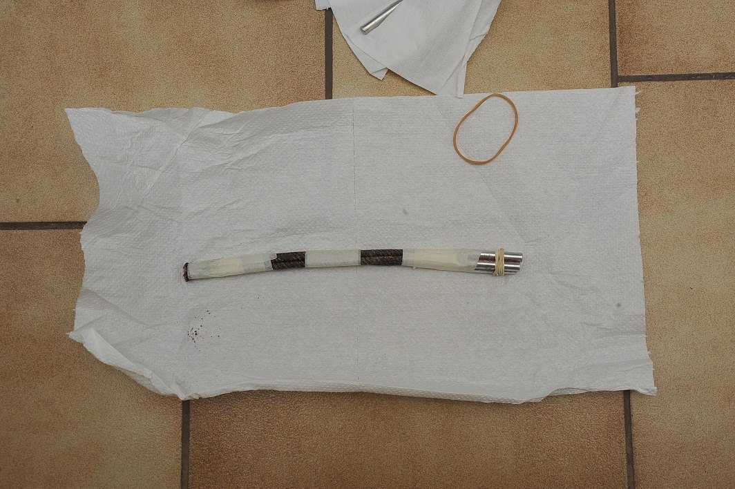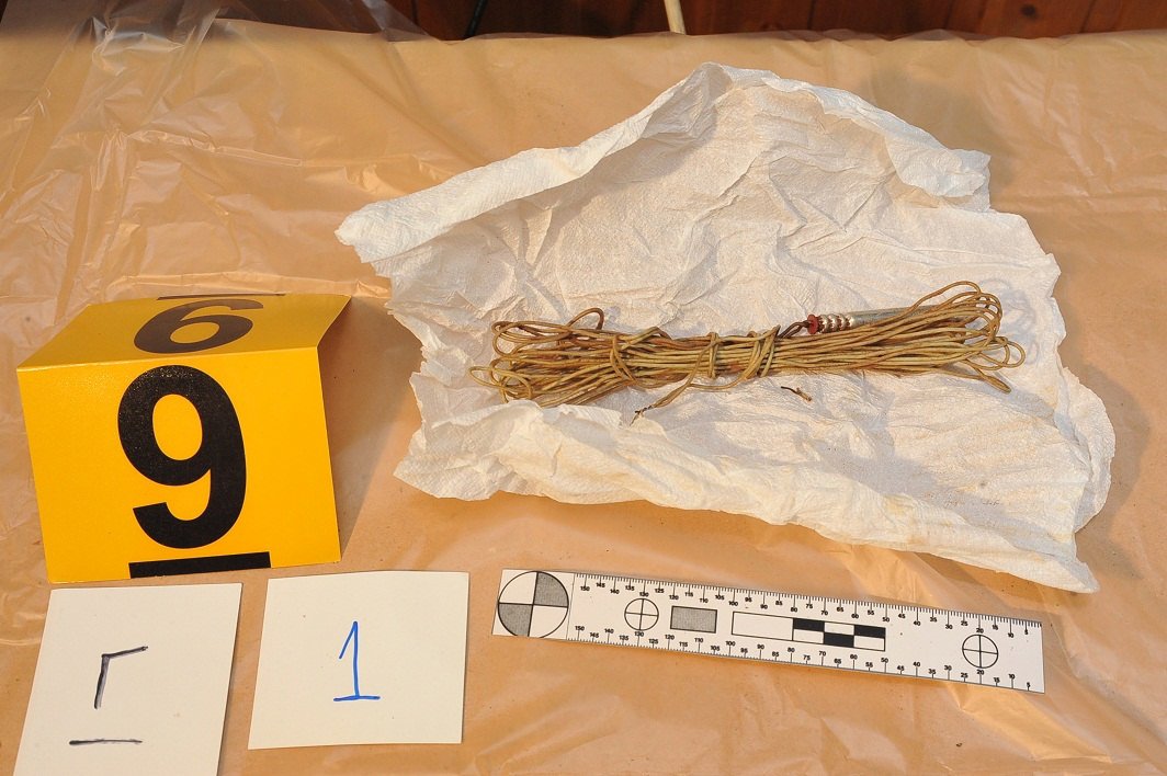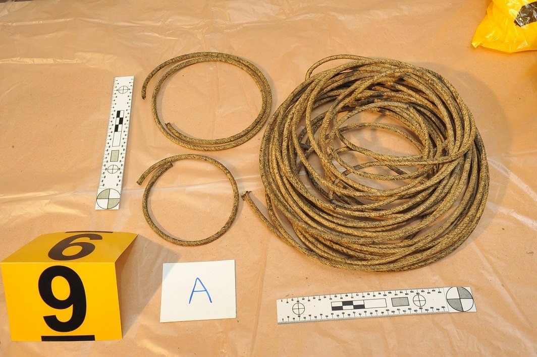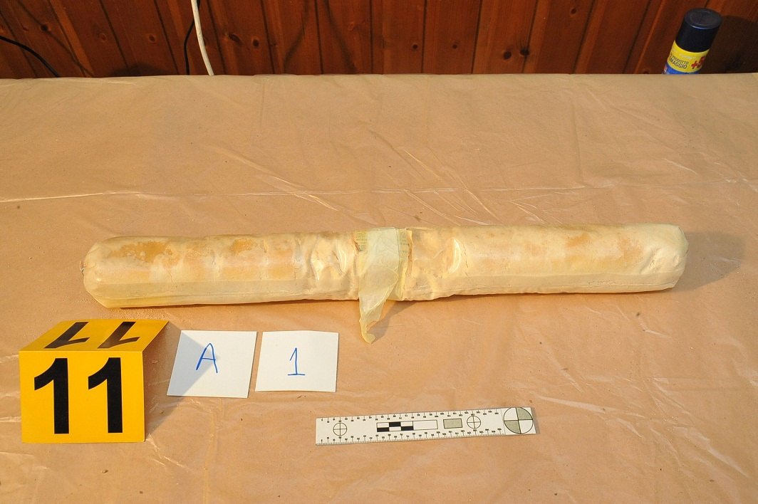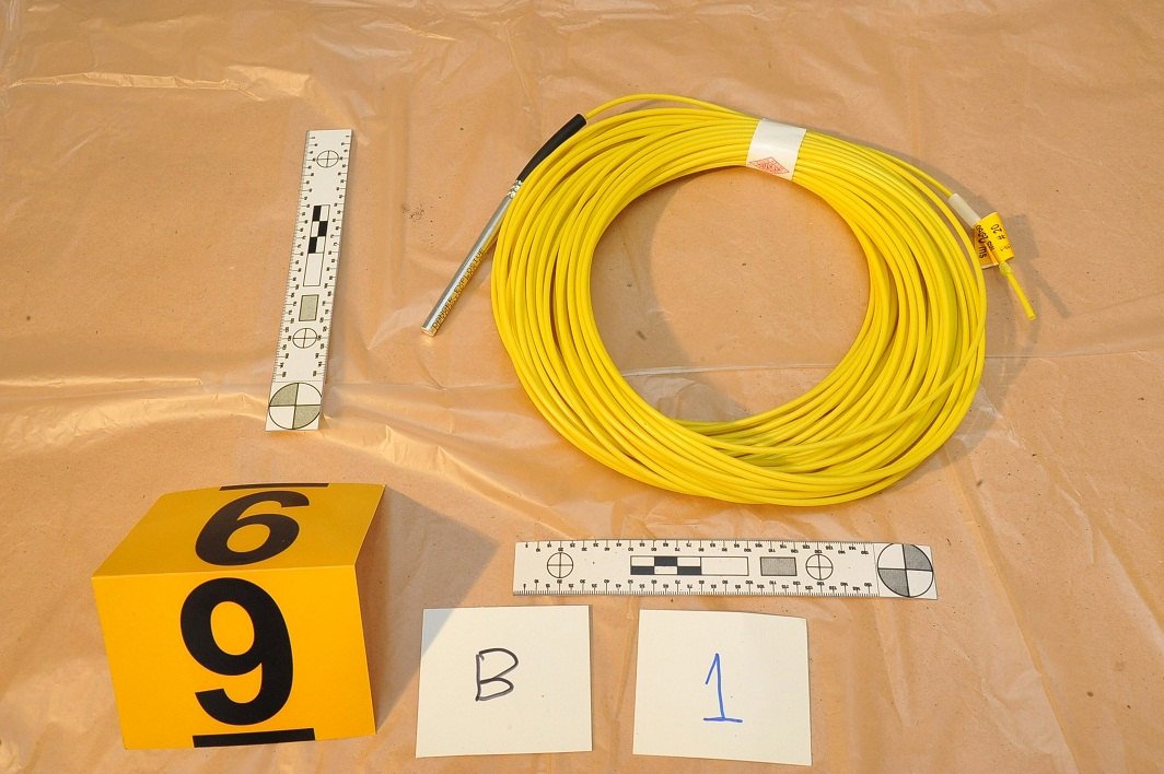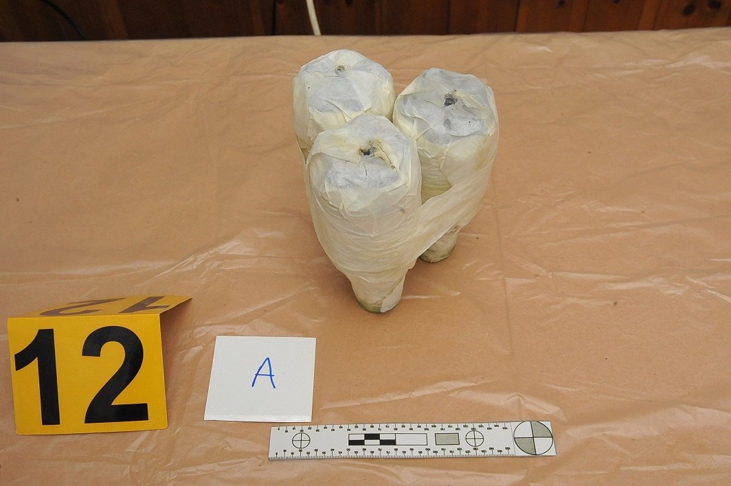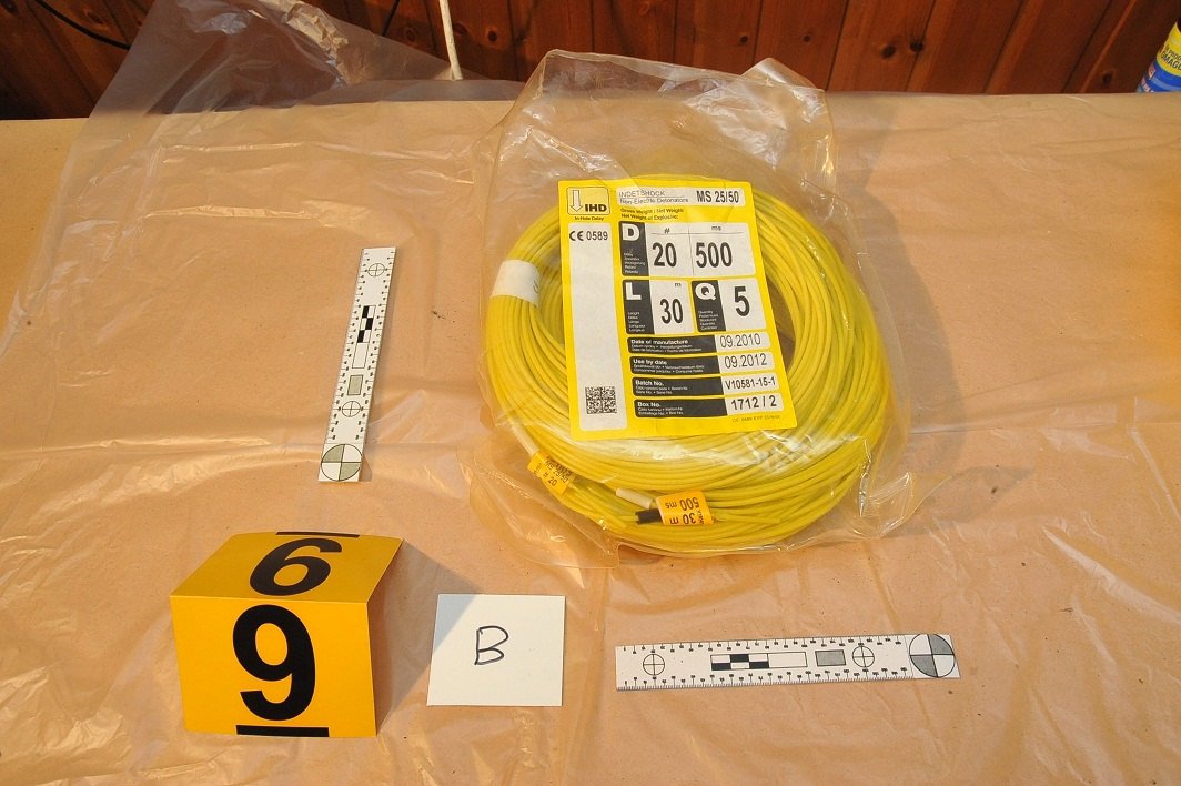 Δύο κουλούρες NONEL (φυτίλι νέας τεχνολογίας), τρεις κουλούρες πλαστικού καλωδίου, το οποίο κατέληγε σε κοινό πυροκροτητή, πολλές νάιλον σακούλες που περιείχαν, μεταξύ άλλων, ποσότητα μασουριών και ποσότητες άγνωστης ουσίας, ποσότητες άγνωστης κοκκώδους ύλης, λευκού χρώματος.