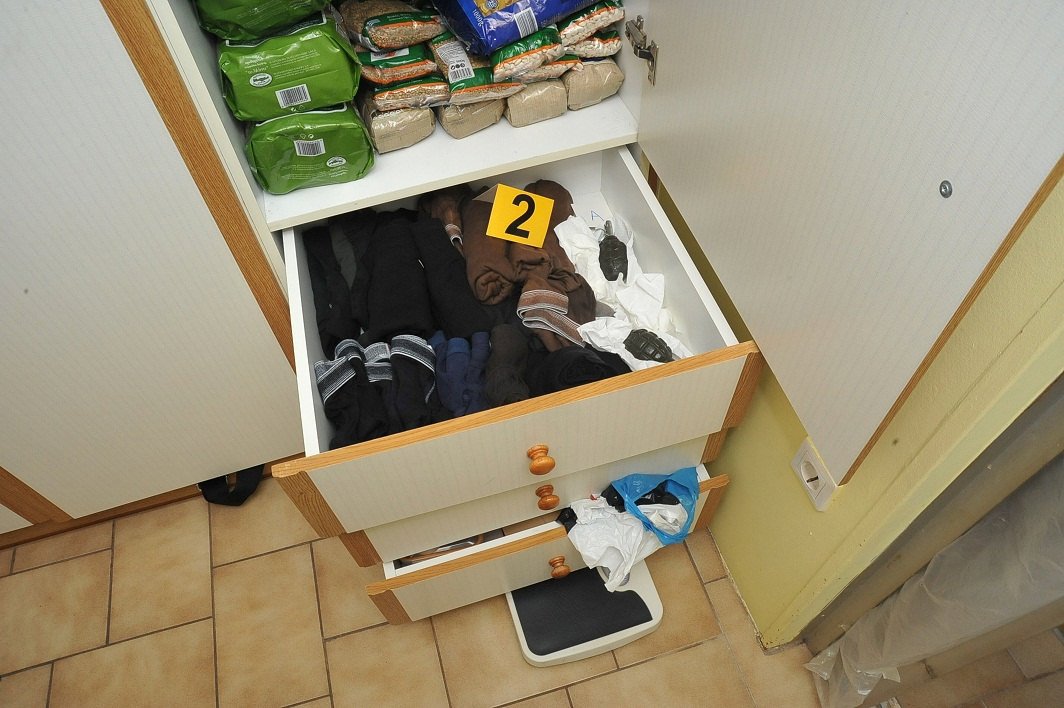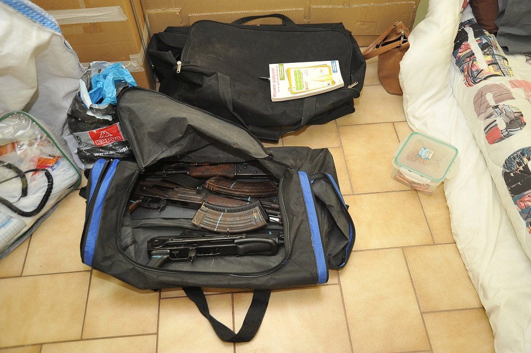 Οκτώ Kalashnikov, εκ των οποίων στα δύο ήταν προσαρμοσμένο σκοπευτικό λέιζερ, πλήθος από γεμιστήρες συνδεδεμένες μεταξύ τους ανά δύο ή ανά τέσσερις, πάρα πολλά φυσίγγια του ιδίου όπλου των οποίων δεν έχει τελειώσει η καταμέτρηση.