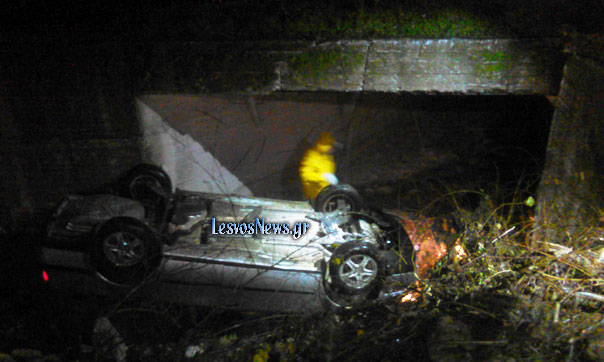 Το οδόστρωμα γλιστρούσε και ο νεαρός πρέπει να ανάψει… λαμπάδα, αφού το αυτοκίνητό του ξέφυγε από την πορεία του, έπεσε στην κοίτη ενός μικρού ποταμού, στη Μυτιλήνη, αλλά ο ίδιος… ούτε γρατζουνιά, σύμφωνα με το lesvosnews.gr.