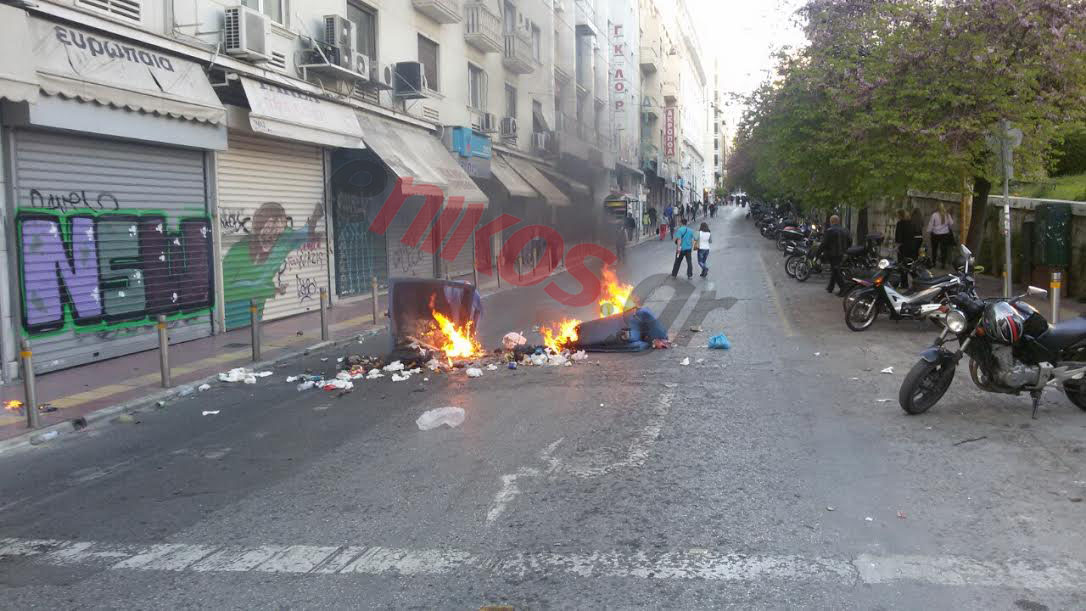 Οι αντεξουσιαστές έβαλαν φωτιά σε κάδους απορριμμάτων στην οδό Ιπποκράτους.