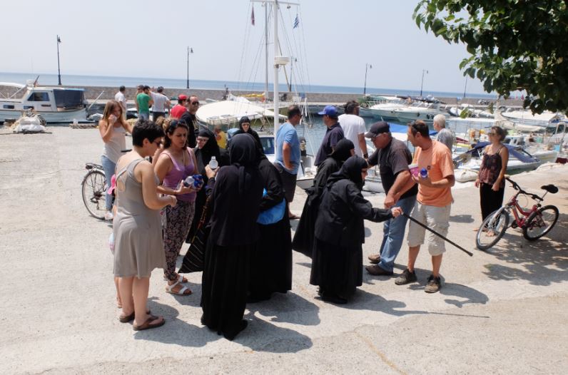 Νωρίτερα, όπως φαίνεται και στις φωτογραφίες οι 6 καλόγριες της Μονής Γαλατάκη έφθασαν στη Λίμνη με καΐκι μετά την εκκένωση της Μονής, λόγω της πυρκαγιάς.