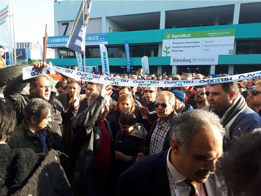Τα δικά τους εγκαίνια στην 27η Agrotica πραγματοποίησαν σήμερα το μεσημέρι οι αγρότες, οι οποίοι διοργάνωσαν συλλαλητήριο στην πλατεία της ΧΑΝΘ, στη Θεσσαλονίκη.
