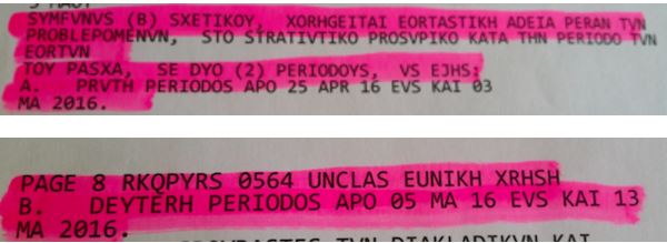 Όπως διαπιστώνεται από τα σχετικά σήματα ΓΕΕΘΑ, ΓΕΣ και ΓΕΑ, είχαν συμφωνήσει σε συγκεκριμένες χρονικές περιόδους για τις άδειες του προσωπικού.