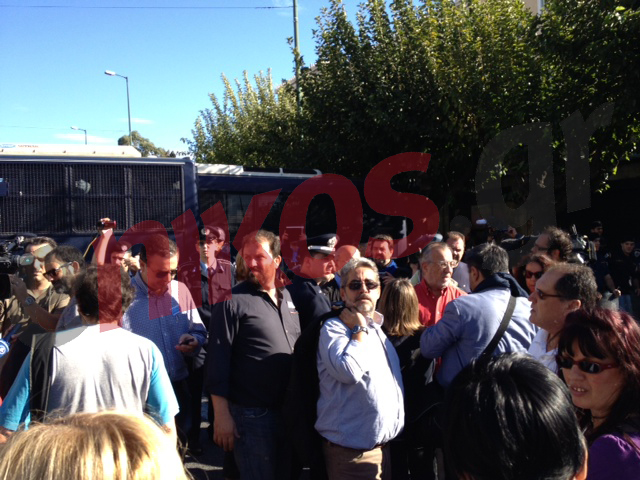 Οι δημοσιογράφοι έχουν συγκεντρωθεί έξω από τη Βουλή, ενώ η αστυνομία έχει κλείσει με κλούβες την Β. Σοφίας και δεν τους αφήνει να περάσουν, ώστε να τερματίσουν την πορεία τους, έξω από τα γραφεία της ΕΣΗΕΑ, στην Ακαδημίας, όπως είχαν προγραμματίσει.