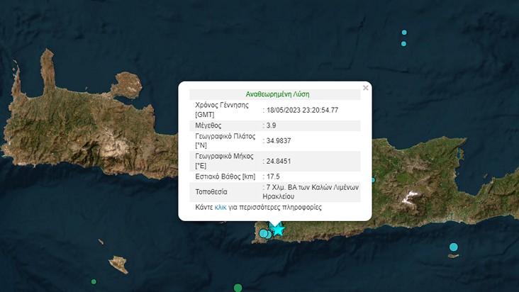 «Δυνατός σεισμός στη νότια Κρήτη μεγέθους 5,1 στις 21.58. Επίκεντρο σε χερσαίο χώρο 10 χλμ. νοτιοδυτικά των Μοιρών. Προηγήθηκαν μερικοί μικρότεροι σεισμοί και χθες έγινε σεισμός μεγέθους 4,2 στην ίδια εστία. Επιβάλλεται πολύ προσεκτική παρακολούθηση και αξιολόγηση από τους επιστήμονες και μέτρα προστασίας από τις τοπικές αρχές, όπως προβλέπει το επιχειρησιακό Σχέδιο ΕΓΚΕΛΑΔΟΣ».