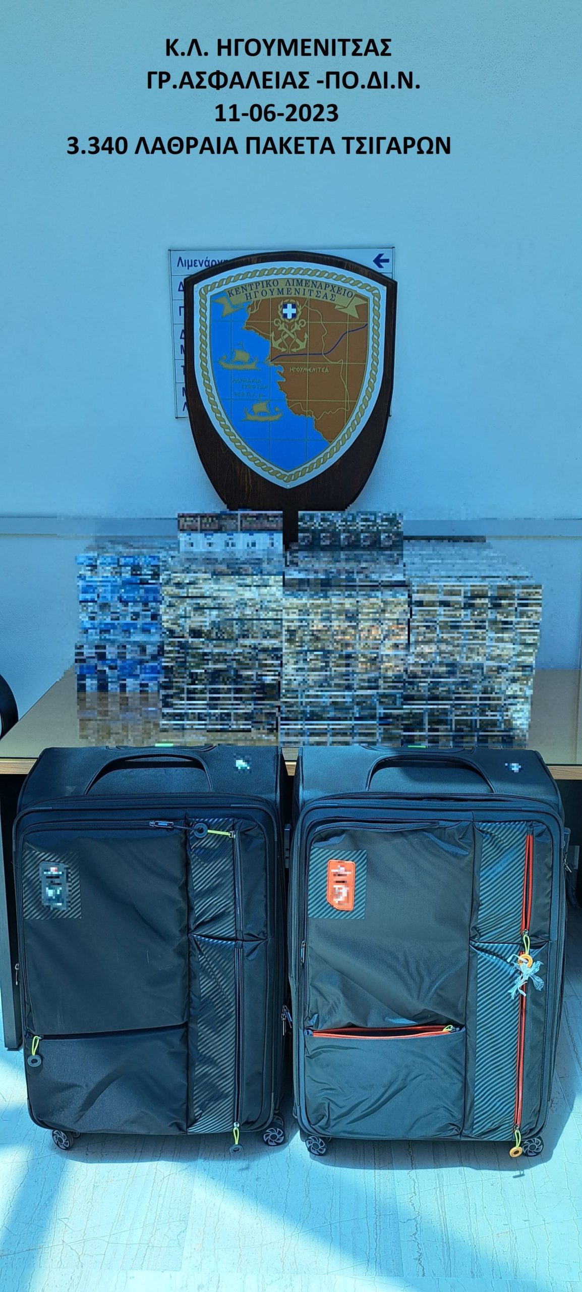 Σύμφωνα με τις ίδιες πληροφορίες, εντοπίστηκαν δύο χειραποσκευές, στις οποίες βρέθηκαν συνολικά 3.340 πακέτα λαθραίων τσιγάρων, διαφόρων επωνυμιών, χωρίς να φέρουν στο σύνολο τους την ένσημη ταινία ειδικού φόρου κατανάλωσης.