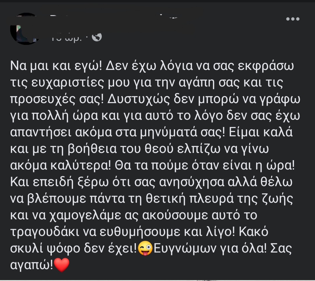 Η νηπιαγωγός μάλιστα βρήκε τη δύναμη να ευχαριστήσει όλο τον κόσμο για την αγάπη που εισέπραξε όλο αυτό το διάστημα.