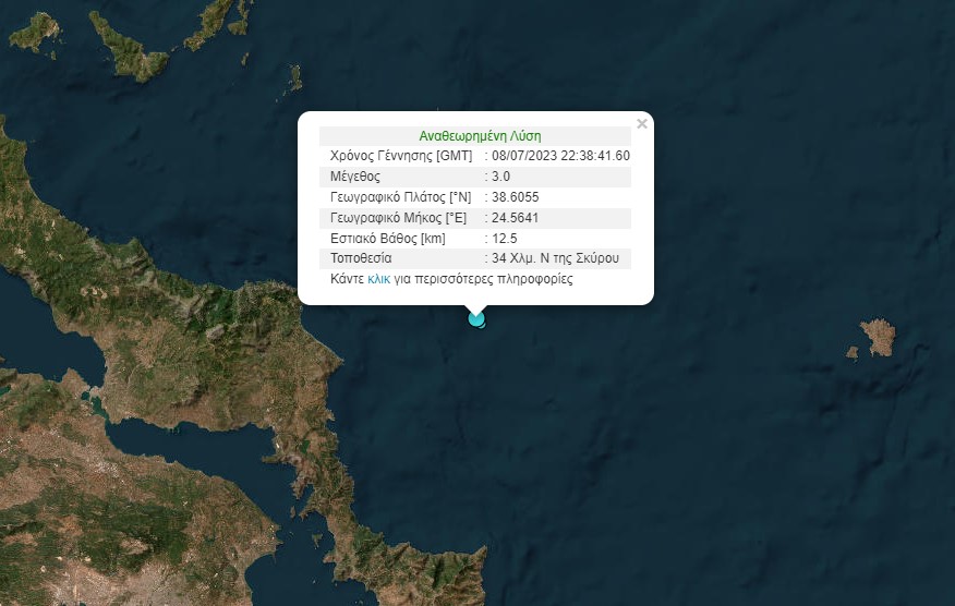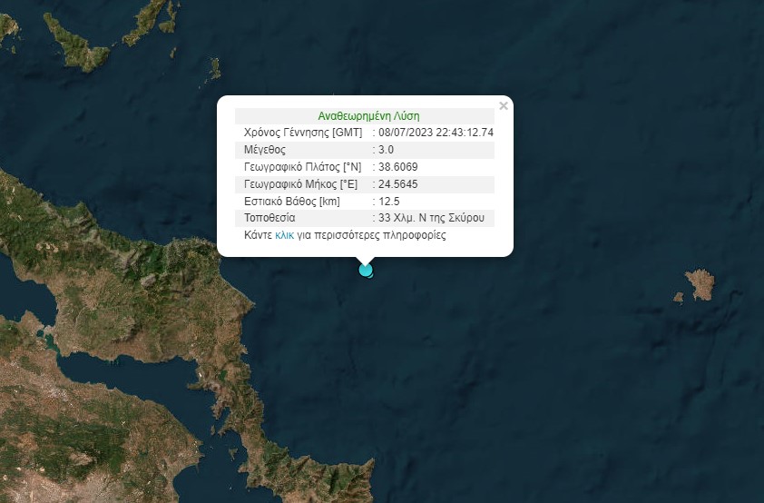 Δύο σεισμοί 3 Ρίχτερ σε πέντε λεπτά ανοιχτά της Σκύρου
