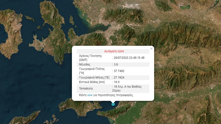 Σεισμός μεγέθους 3,6 Ρίχτερ σημειώθηκε τα ξημερώματα της Παρασκευής ανοιχτά της Σάμου.