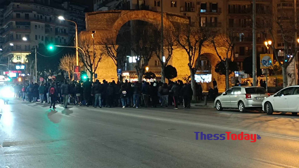 Πορεία πραγματοποιήθηκε στο κέντρο της Θεσσαλονίκης το βράδυ του Σαββάτου (16/3) μετά την έφοδο της ΕΛ.ΑΣ. στο ΑΠΘ.