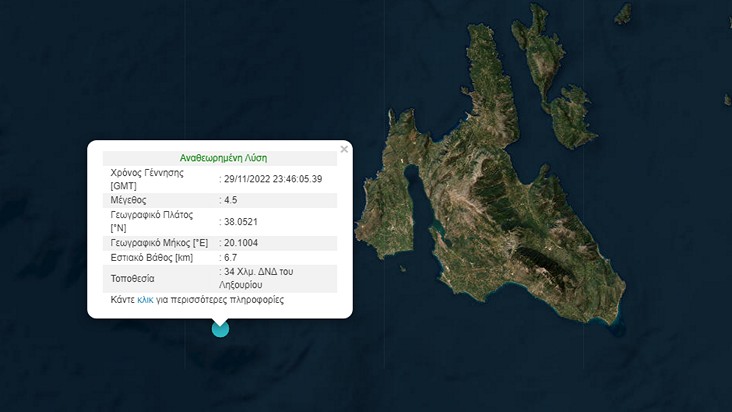Το επίκεντρο της δόνησης εντοπίζεται 34 χλμ. δυτικά-νοτιοδυτικά του Ληξουρίου.
