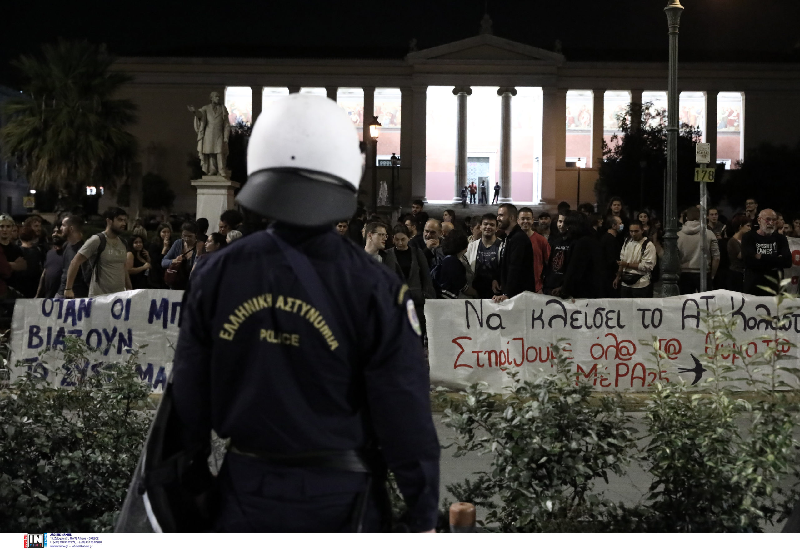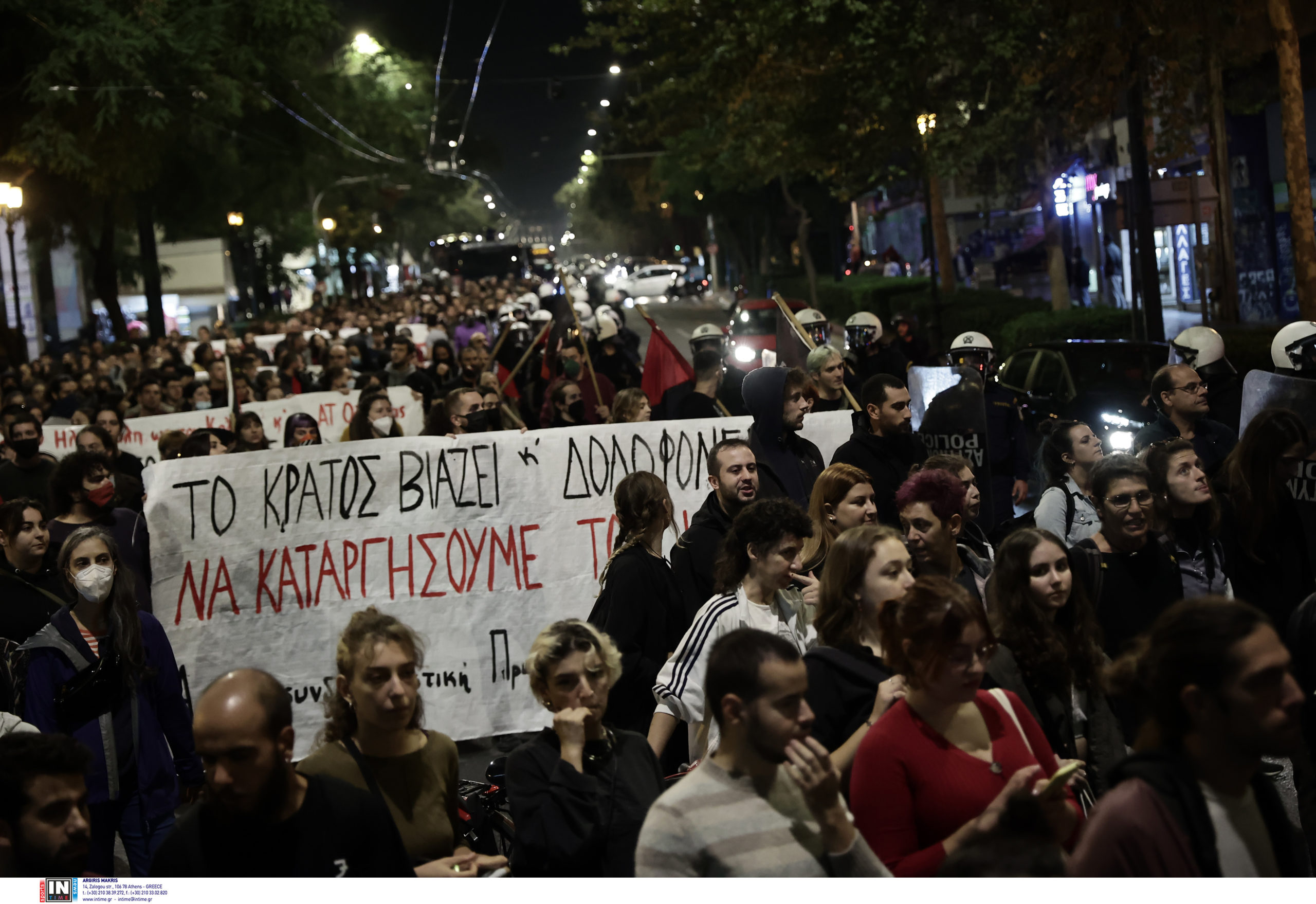 Πορεία διαμαρτυρίας για την υπόθεση βιασμού 19χρονης στο ΑΤ Ομόνοιας πραγματοποίησαν το βράδυ της Δευτέρας 24 Οκτωβρίου περίπου 600 άτομα. Μετά το τέλος της πορείας σημειώθηκε ένταση στην πλατεία Βικτωρίας, όταν άγνωστοι πέταξαν φωτοβολίδες στις δυνάμεις των ΜΑΤ. Ακολούθησε κυνηγητό από τα ΜΑΤ, οι οποίοι απάντησαν με κρότου – λάμψης. Οι άγνωστοι διέφυγαν προς τα Εξάρχεια, ενώ σύμφωνα με τις πληροφορίες δεν έγινε κάποια προσαγωγή.