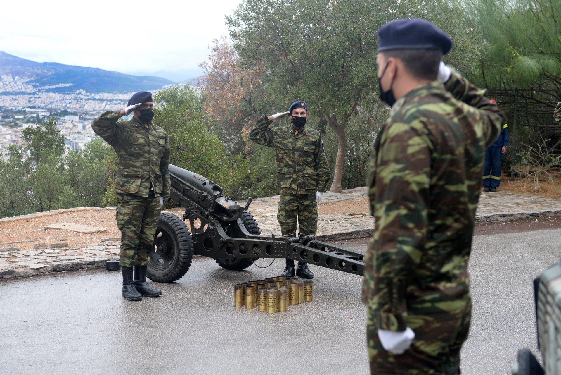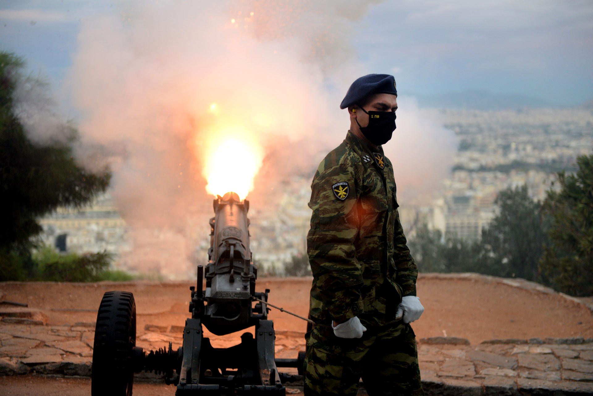 Εντυπωσιακές οι βολές πυροβολικού από τον Λυκαβηττό.