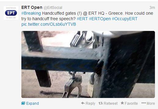 «Χειροπέδες στις πύλες της ΕΡΤ-Ελλάδα. Πώς θα μπορούσε κανείς να περάσει χειροπέδες στην ελευθερία του λόγου;»