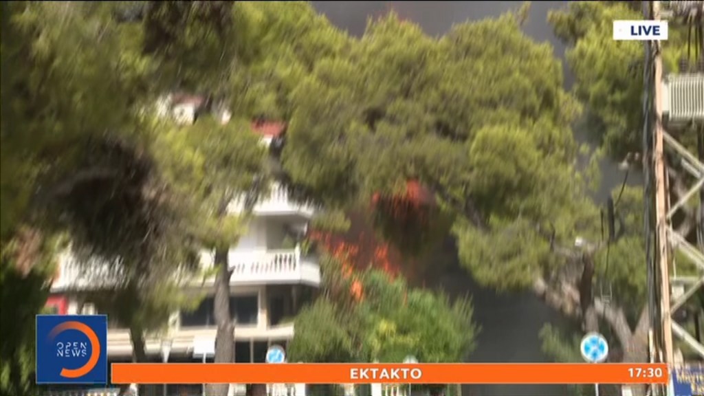 Στην πλατεία της Βαρυμπόμπης έχει φτάσει η μεγάλη φωτιά. Όπως μετέδωσε το ΟPEN, καίγονται σπίτια.