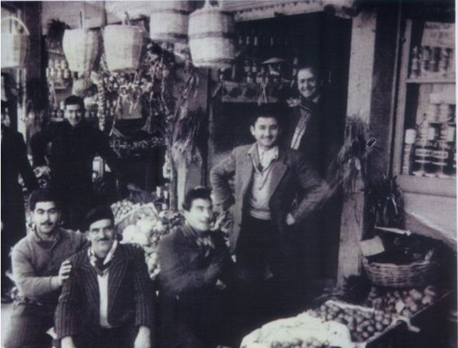 Λεζάντα Φωτογραφίας : Το οπωροπωλείο του Βουτσινά στην οδό Εμπορίου. (αρχείο Ορδουμποζάνη) 97) Η στοά του Εμπορικού Επιμελητήριου και το καφενείο “Κέντρον” στη γωνία Λ. Δημοκρατίας και 14ης Μαΐου.