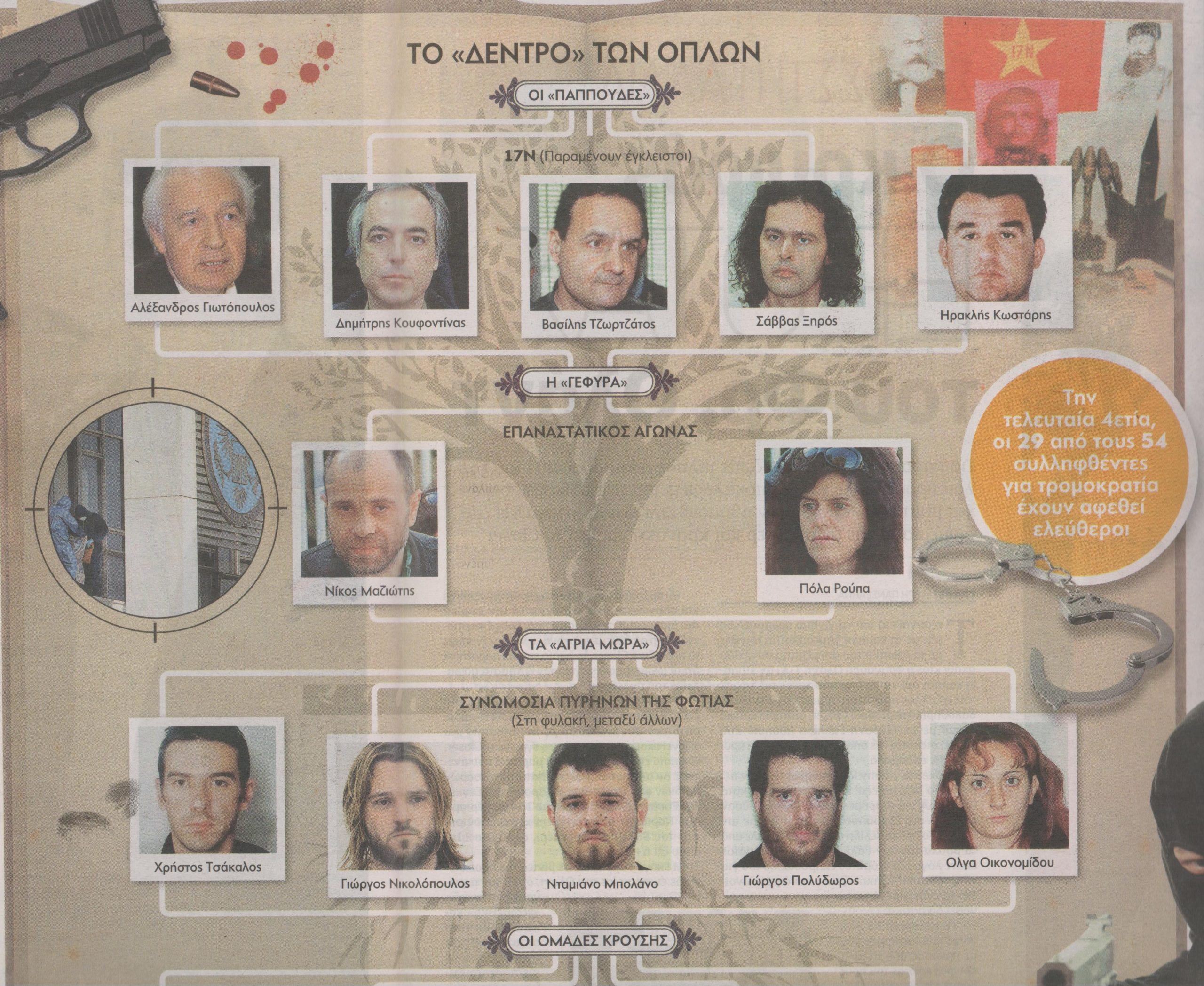 Το «δέντρο» των τρομοκρατικών οργανώσεων στην Ελλάδα έχει τις ρίζες του αναμφίβολα στη «17Ν» που γεννήθηκε στις αρχές της Μεταπολίτευσης. Σε αυτήν συμμετείχαν, όπως αποδείχθηκε, άνθρωποι που δεν ήθελαν να αποδεχθούν το τέλος του ένοπλου αγώνα, ούτε και την περίοδο κοινοβουλευτισμού που ξημέρωνε μετά τη χούντα των συνταγματαρχών.