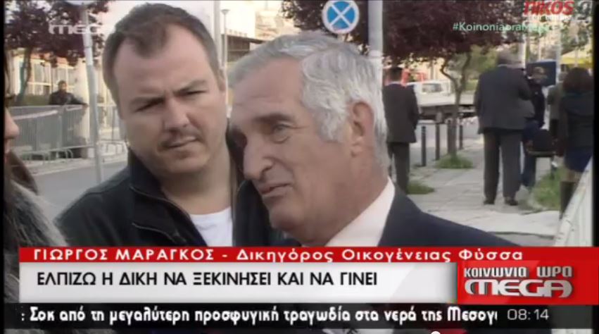 Ο Γιώργος Μαραγκός, δικηγόρος της οικογένειας του Παύλου Φύσσα, ο οποίος που δολοφονήθηκε στο Κερατσίνι στις 18 Σεπτεμβρίου του 2013 από τον Γιώργο Ρουπακιά, μέλος της Χρυσής Αυγής, δήλωσε «ελπίζω η δίκη να ξεκινήσει και να γίνει».