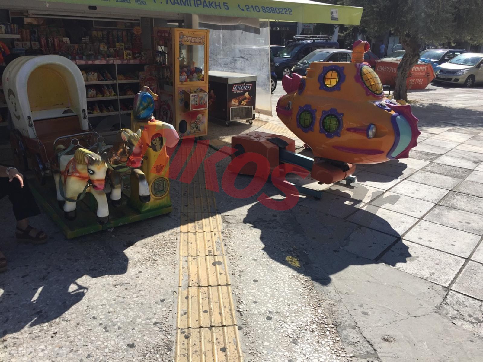 ένα παιχνίδι που έχει τοποθετηθεί περιμετρικά του περιπτέρου εμποδίζει τη διέλευση ατόμων χωρίς όραση, καθώς βρίσκεται επάνω στον οδηγό όδευσης τυφλών.Σημειώνεται ότι στη φωτογραφία που έστειλε αναγνώστης του enikos.gr, φαίνεται ένα παιχνίδι που είναι τοποθετημένο σε σημείο όπου συνεχίζουν οι πλάκες της ειδικής πεζοδρόμησης, πίσω από το περίπτερο.