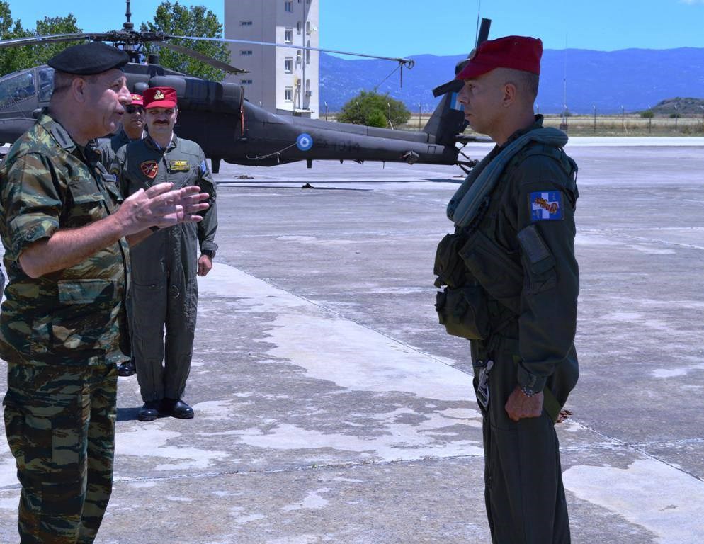 Με φόντο ένα ελικόπτερο kiowa warrior, o αρχηγός του Γενικού Επιτελείου Στρατού (ΓΕΣ) Αντιστράτηγος Χαράλαμπος Λαλούσης, πραγματοποίησε στις 3 και 4 Ιουνίου διήμερη επίσκεψη στην 1η Στρατιά, συνοδευόμενος από τον Διοικητή της, Αντιστράτηγο Βασίλειο Παπαδόπουλο.