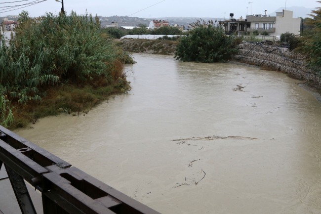 Στην πόλη του Ηρακλείου, χαρακτηριστικές είναι οι σημερινές εικόνες του ποταμού Γιόφυρου, όπου η στάθμη των υδάτων έχει ανέβει επικίνδυνα.