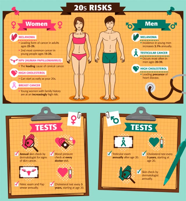 Η εμφάνιση των σοβαρών ασθενειών ανάλογα με το φύλο και την δεκαετία ζωής του ανθρώπου, παρουσιάζεται σε ένα πρακτικό εγχειρίδιο, αποτυπώνοντας τους “κινδύνους” από την ηλικία των 20 ετών έως και τα 70.