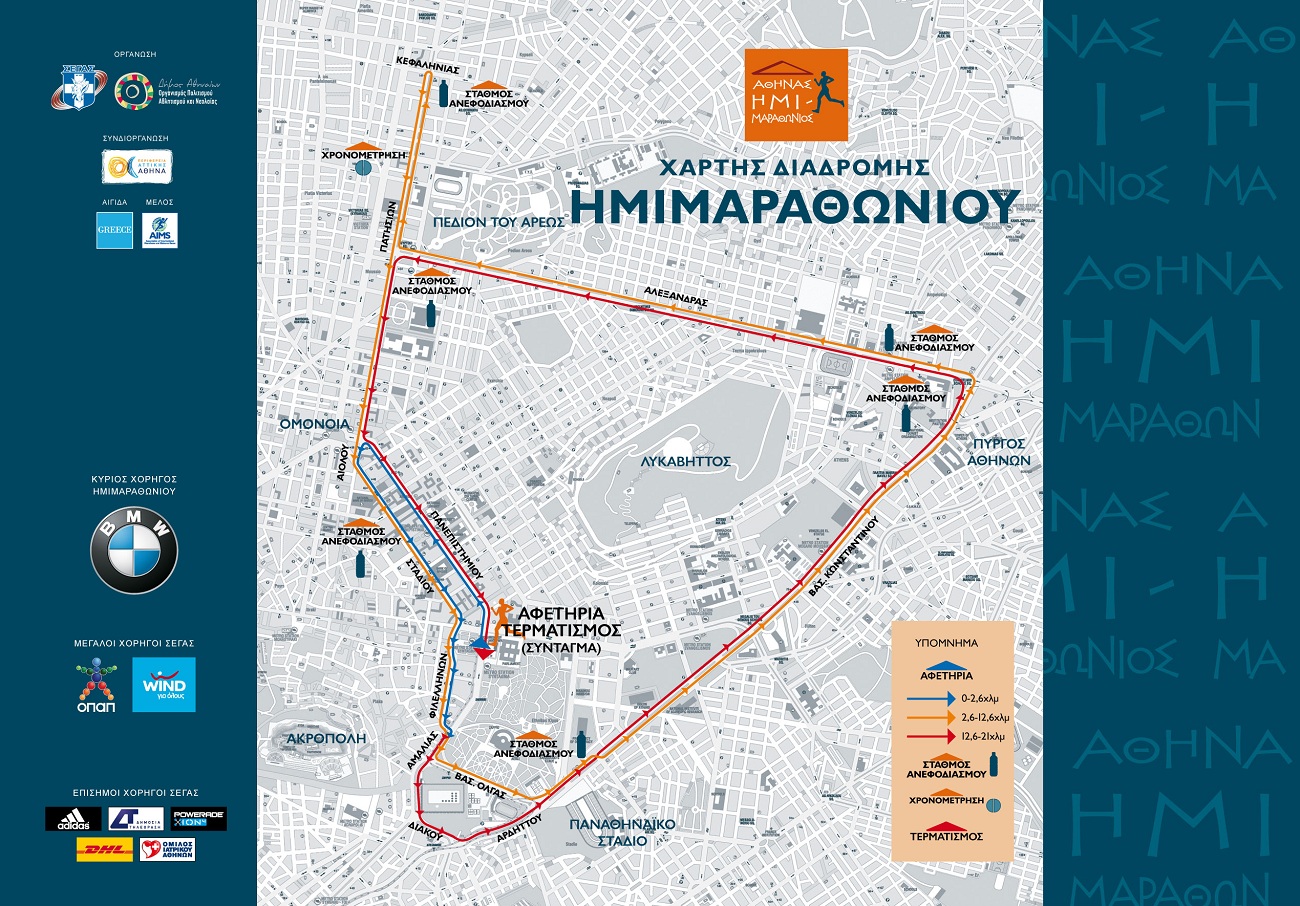 Λόγω διεξαγωγής του Ημιμαραθώνιου αγώνα δρόμου την Κυριακή 4/5 από τις 08.00-12.30 με την επωνυμία ‘‘ATHENS HALF MARATHON’’ θα πραγματοποιηθούν σταδιακές διακοπές της κυκλοφορίας των οχημάτων (συμπεριλαμβανομένων των ποδηλάτων) σε λεωφόρους, οδούς και πλατείες του δήμου Αθηναίων.