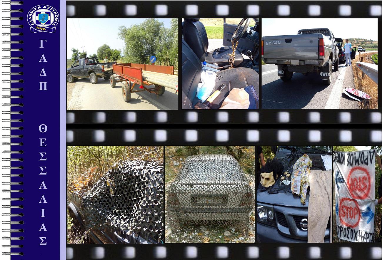 Για τη διευκόλυνση των μετακινήσεών τους χρησιμοποιούσαν κλεμμένα οχήματα που αφαιρούσαν από διάφορες πόλεις της Ελλάδας. Ακολούθως, τοποθετούσαν σε αυτά πινακίδες που οι ίδιοι παραποιούσαν σε προγενέστερο χρόνο με τη χρήση κατάλληλων εργαλείων. Συγκεκριμένα, παραποιούσαν με σφυρηλάτηση το αριθμητικό και το γραμματικό μέρος των πινακίδων, ενώ στη συνέχεια προέβαιναν στη βαφή των νέων στοιχείων, με αποτέλεσμα να μην είναι εμφανής και διακριτή η παρέμβασή τους.Στη συνέχεια έκρυβαν τα εν λόγω οχήματα σε αγροτικές περιοχές καλύπτοντάς τα με δίκτυ παραλλαγής στρατιωτικού τύπου για να χρησιμοποιηθούν κατά τη διάπραξη των εγκληματικών τους ενεργειών.