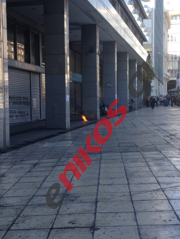 Ένταση επικράτησε νωρίτερα στο κέντρο της Αθήνας, ενώ όπως φαίνεται και στις φωτογραφίες ομάδα ατόμων πέταξε μολότοφ στο κτίριο που στεγάζεται το υπουργείο Οικονομικών.
