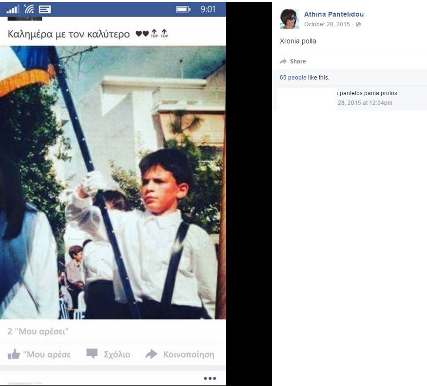 Την 28η Οκτωβρίου του 2015, είχε αναρτήσει μία φωτογραφία του τραγουδιστή όταν ήταν σημαιοφόρος κατά τα σχολικά του χρόνια.