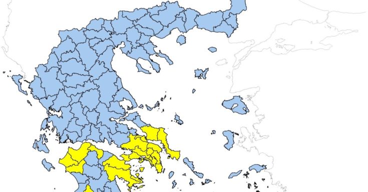 Συγκεκριμένα, προβλέπεται υψηλός κίνδυνος πυρκαγιάς (κατηγορία κινδύνου 3) για τις εξής περιοχές: