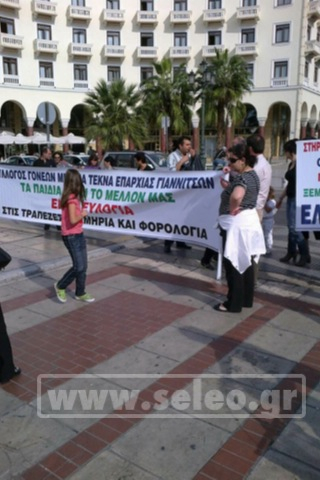 Συγκέντρωση και πορεία διαμαρτυρίας πραγματοποίησαν στο κέντρο της Θεσσαλονίκης πολύτεκνες οικογένειες.Οι πολύτεκνοι συγκεντρώθηκαν στην Πλατεία Αριστοτέλους και πορεύτηκαν ως το κτίριο του υπουργείου Μακεδονίας Θράκης, διαμαρτυρόμενοι για περικοπές στα επιδόματά τους, με τα νέα μέτρα.