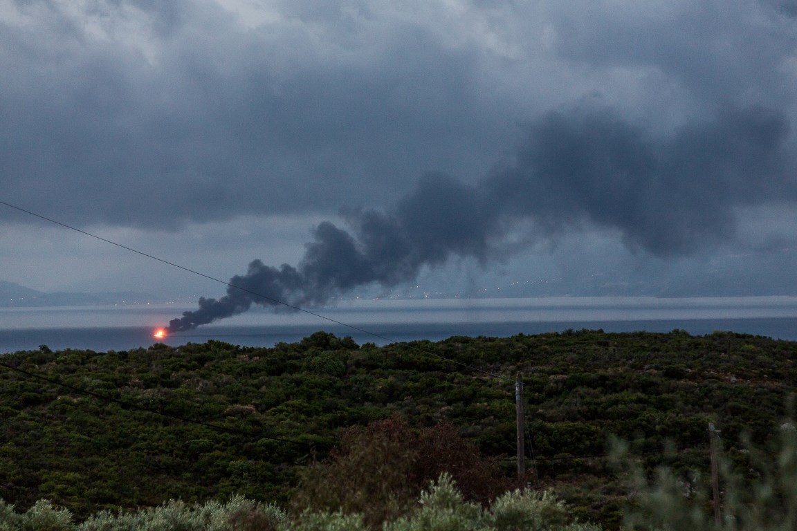 Οι πρώτες εικόνες από τη φλεγόμενη θαλαμηγό – Σώοι οι επτά επιβάτες – ΦΩΤΟ