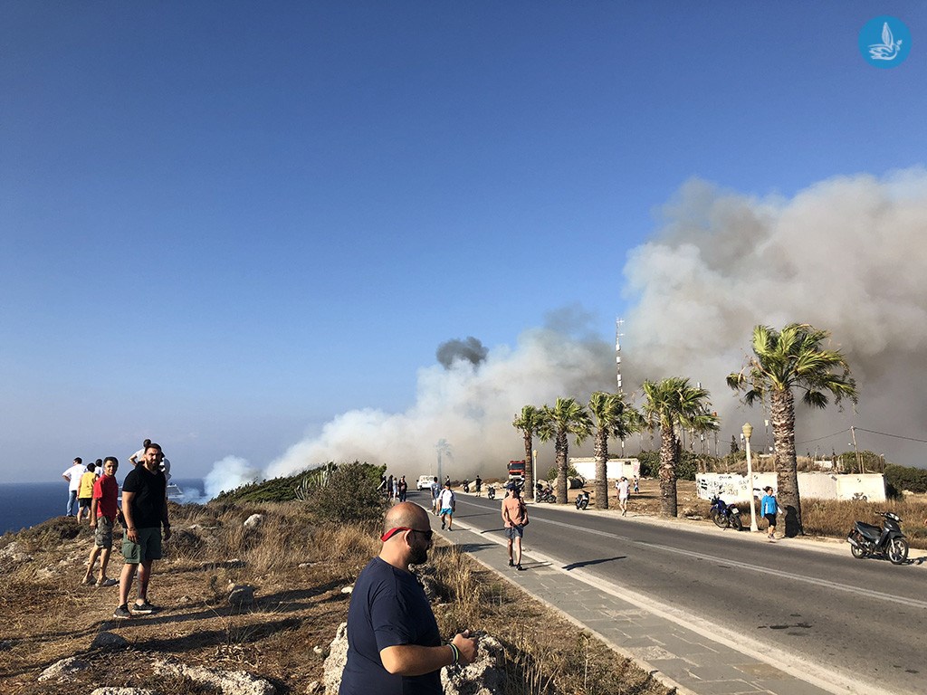 Η φωτιά, όπως γράφει η “Δημοκρατική” της Ρόδου εκδηλώθηκε υπό αδιευκρίνιστες συνθήκες, στην πλαγιά του Mόντε Σμίθ, κοντά στο πάρκο κεραιών.