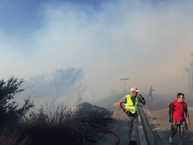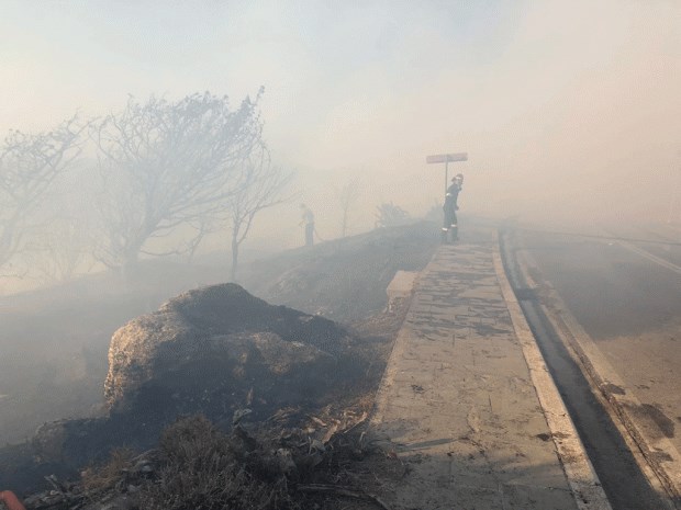 Λόγω των υψηλών ανέμων που επικρατούν στην περιοχή η φωτιά εξαπλώθηκε γρήγορα και επεκτάθηκε με αποτέλεσμα να έχει καλυφθεί ο ουρανός από πυκνούς καπνούς που είναι ορατοί από το κέντρο της πόλης.