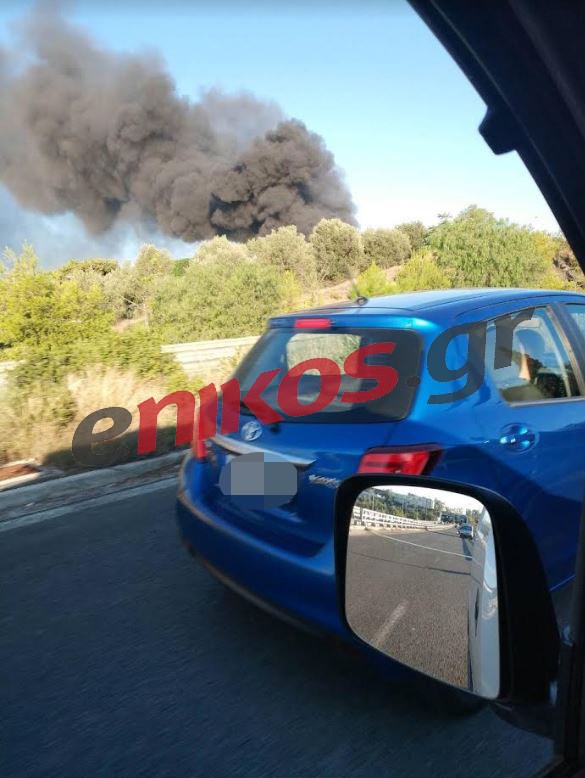 Όπως φαίνεται στις φωτογραφίες που έστειλε αναγνώστης του enikos.gr, ο καπνός από τη φωτιά είναι ιδιαίτερα πυκνός.