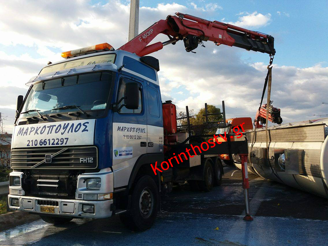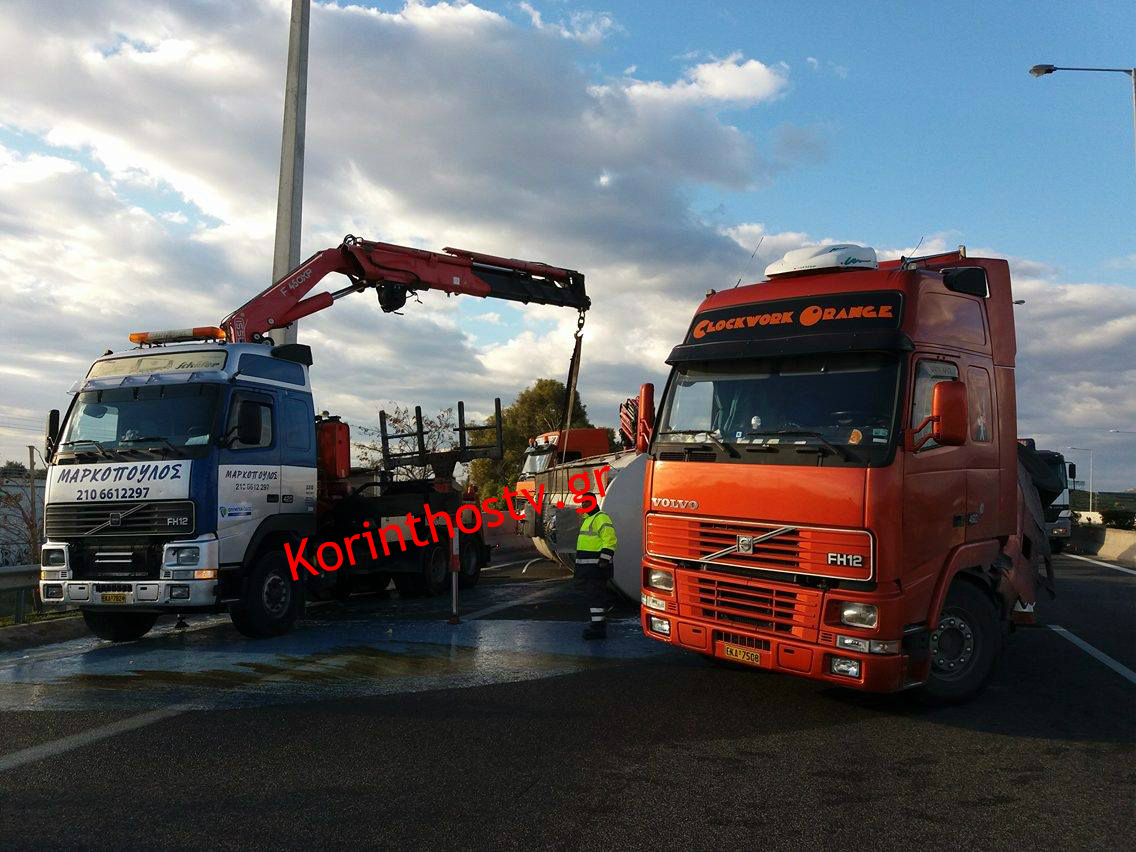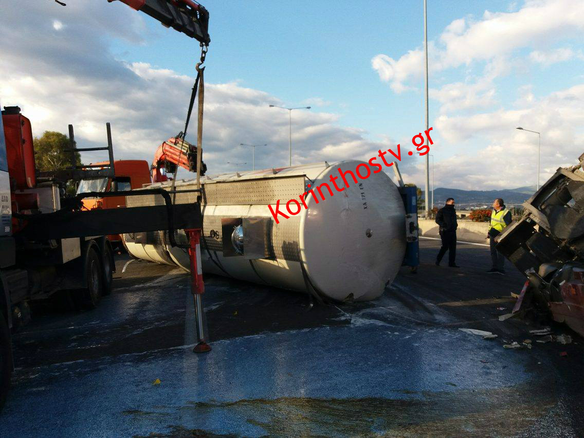 Ανετράπη βυτιοφόρο με γάλα στην Ε.Ο. Αθηνών – Κορίνθου