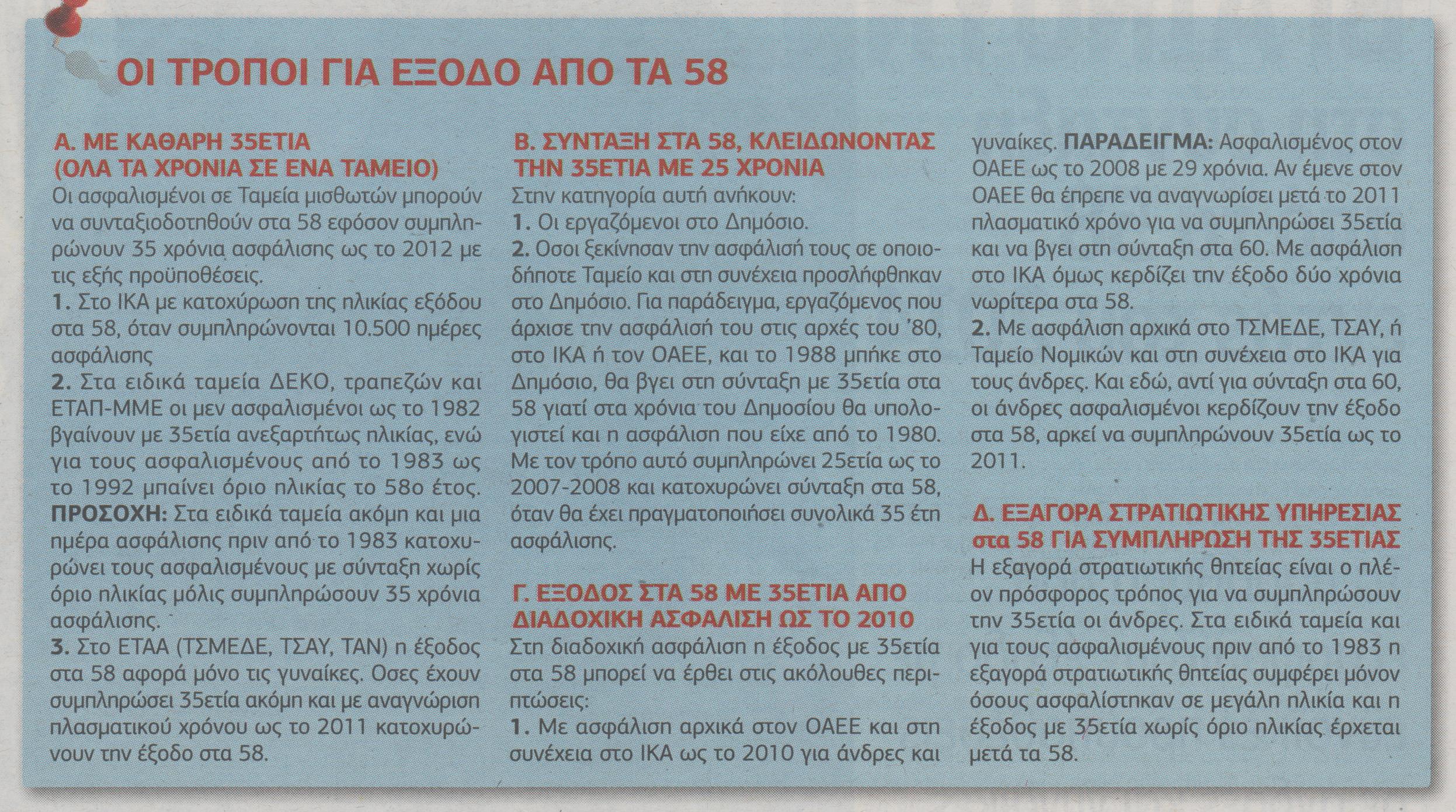 Σύνταξη στα 58 με 35ετία μπορούν να βγάλουν οι ασφαλισμένοι σε ΙΚΑ, Δημόσιο, ΔΕΚΟ, τράπεζες μέσα στο 2014, παρότι τα πράγματα δυσκολεύουν από πλευράς θεμελίωσης συνταξιοδοτικού δικαιώματος.
