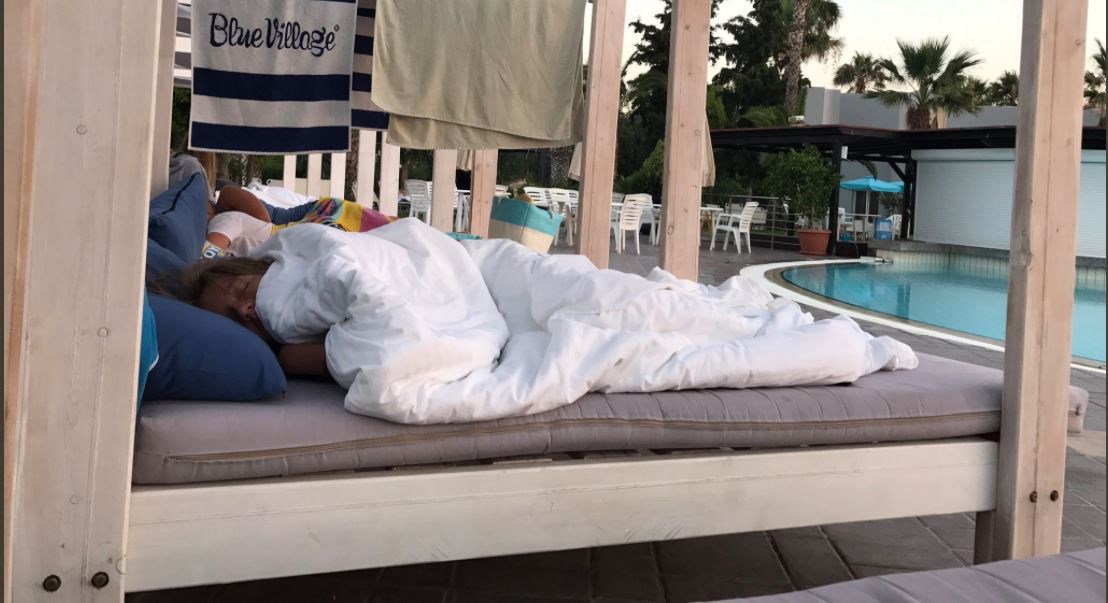 Όπως φαίνεται και στις φωτογραφίες που αναρτώνται στα social media, οι τουρίστες κοιμήθηκαν έξω δίπλα στην πισίνα ή ακόμα και στο γρασίδι.