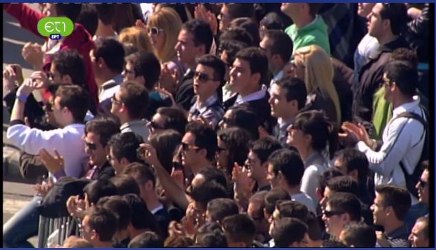 Πολύ σφιχτά τα πλάνα τις ΕΡΤ που δείχνουν τους θεατές,(ελάχιστους και τυχερούς) στις περιοχές κατά μήκος της παρέλασης. Δείτε πόσους εντοπίσαμε.