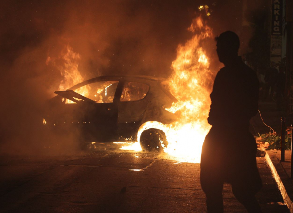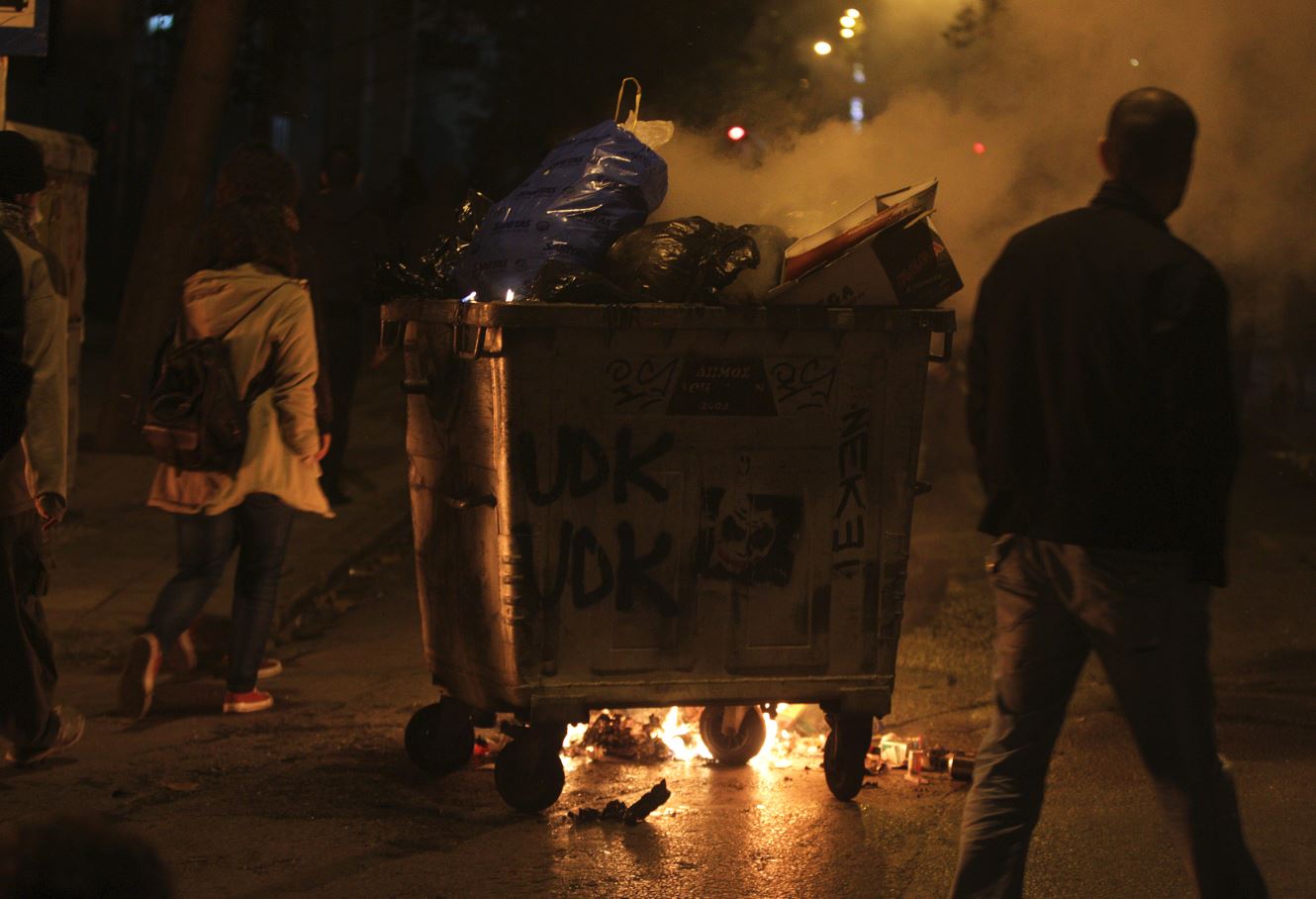 Ομάδα διαδηλωτών έβαλε φωτιές σε κάδους απορριμμάτων, έσπασε βιτρίνες καταστημάτων, έσπασε μάρμαρα κτιρίων και προκάλεσε ζημιές σε στάσεις λεωφορείων και σε τηλεφωνικούς θαλάμους.