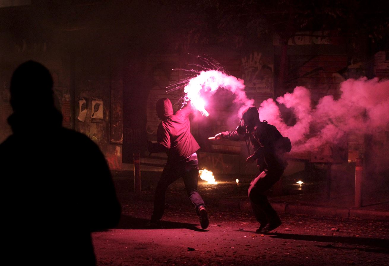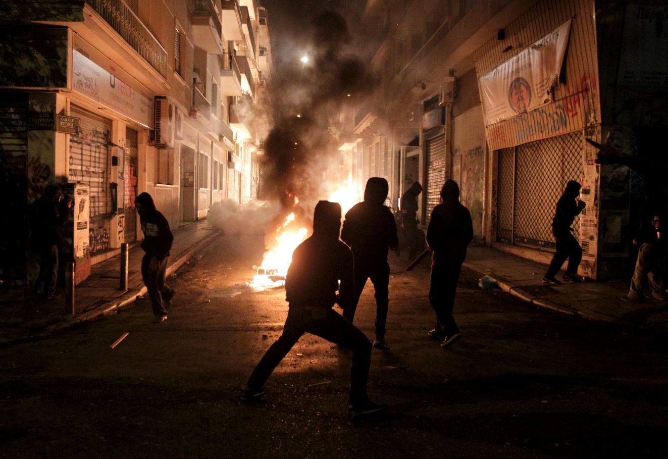 Σε πεδίο μάχης είχαν μετατραπεί τα Εξάρχεια με κουκουλοφόρους να εκτοξεύουν μολότοφ εναντίον ανδρών των ΜΑΤ. Δείτε τις εικόνες από την οδό Στουρνάρη