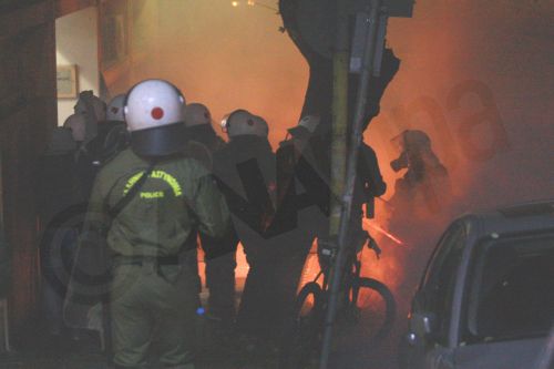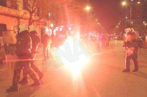 Οι τελευταίοι επενέβησαν, κάνοντας χρήση χειροβομβίδων κρότου-λάμψης, απομακρύνοντας τους κουκουλοφόρους, τους οποίους καταδίωξαν στην γύρω περιοχή.