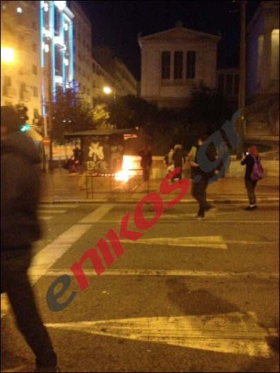 Τα επεισόδια στην Ομόνοια συνεχίστηκαν με ομάδες ατόμων να εκτοξεύουν μολότοφ εναντίον ανδρών των ΜΑΤ. Την ίδια ώρα η Αύρα της αστυνομίας επιχειρούσε προκειμένου να τους αποτρέψει.