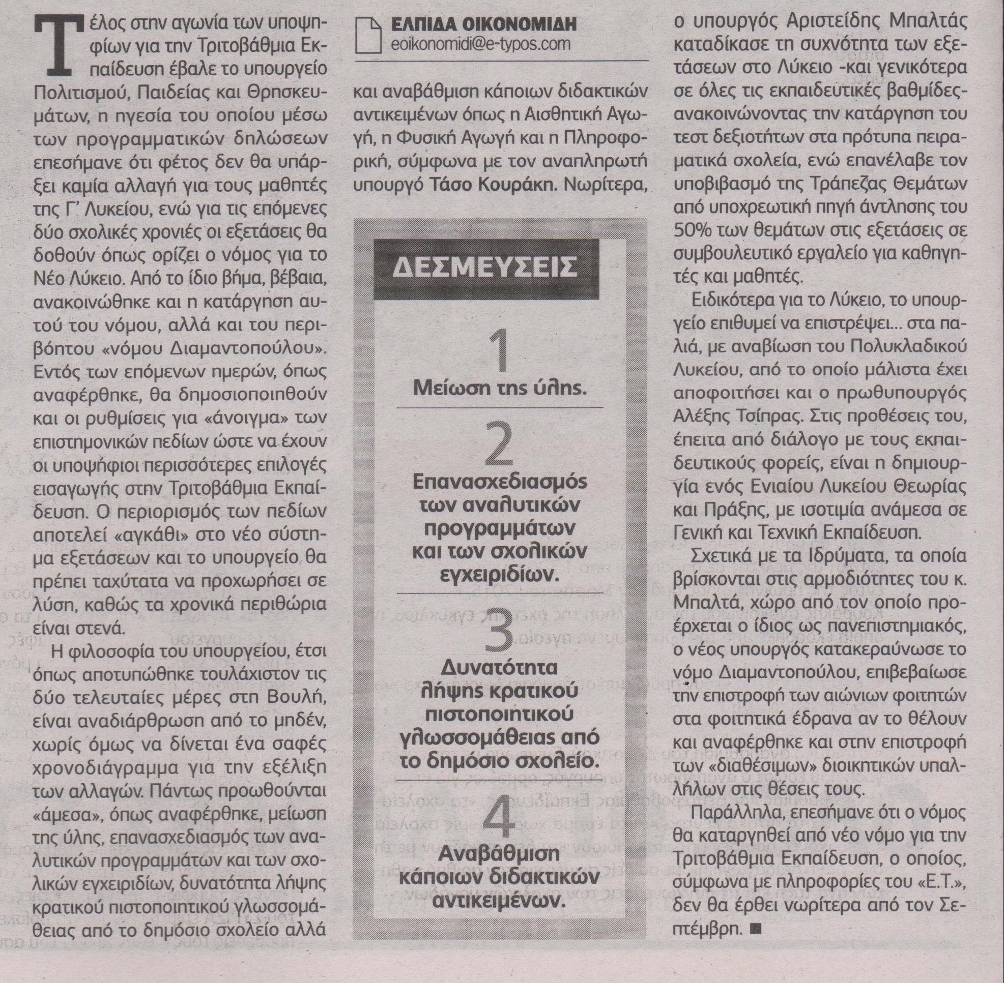Διαβάστε ολόκληρο το δημοσίευμα από τον Ελεύθερο Τύπο: